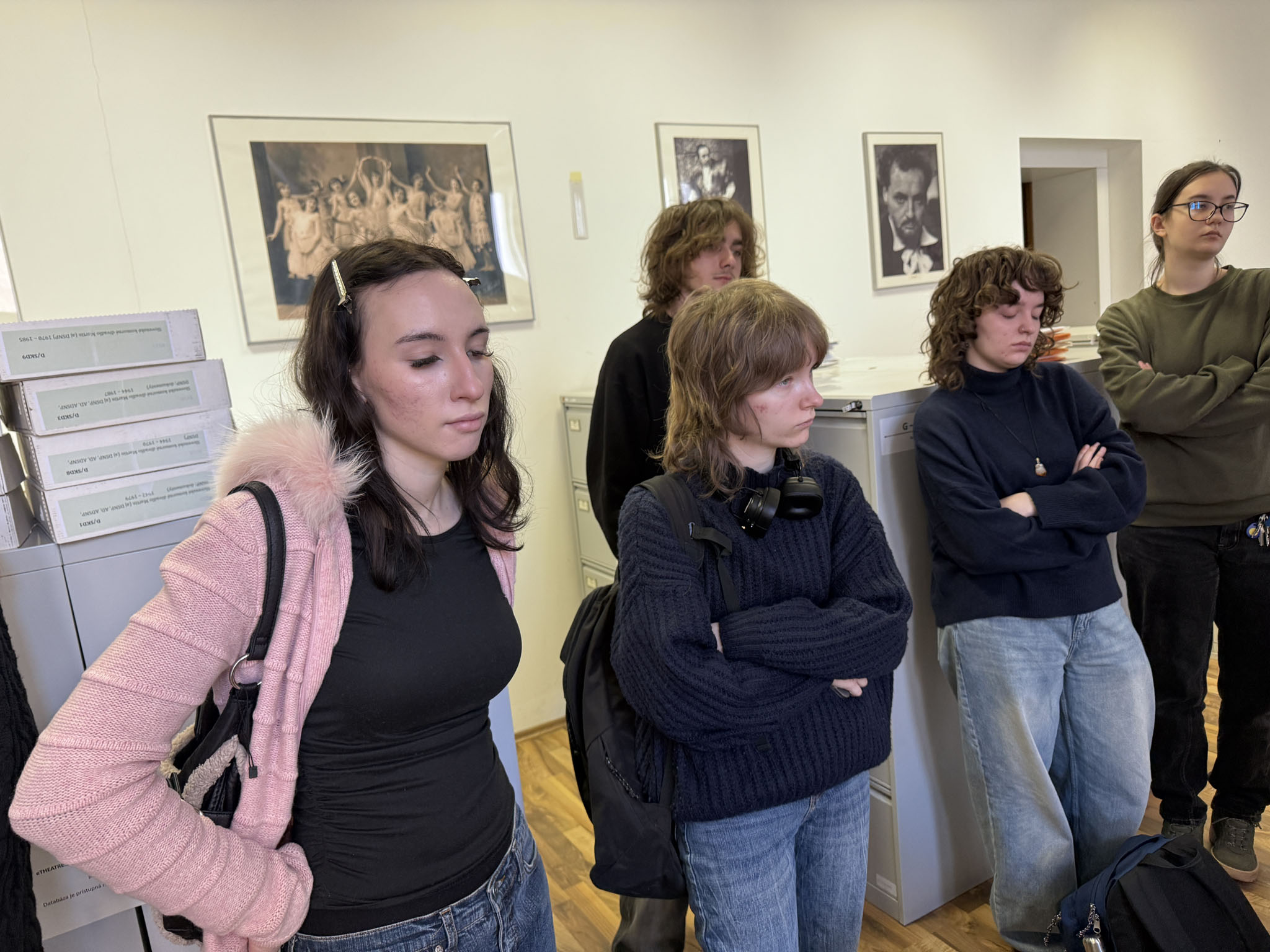Žiaci 3. ročníka odboru Grafický dizajn sa 8. januára 2026 zúčastnili na komentovanej prehliadke priestormi Divadelného ústavu.